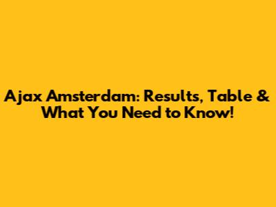 Ajax Amsterdam: Results, Table & What You Need To Know!