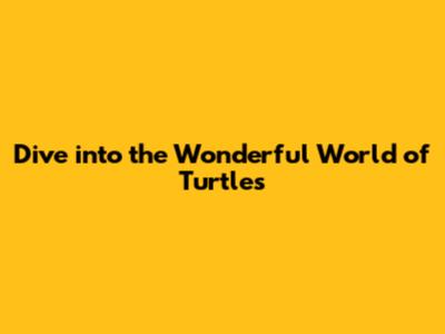 Dive into the Wonderful World of Turtles