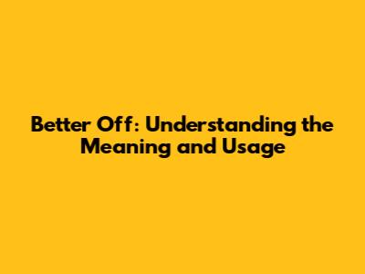Better Off: Understanding The Meaning And Usage