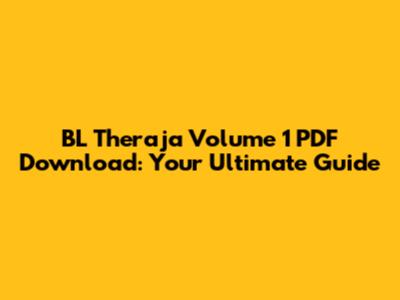 BL Theraja Vol 1 PDF: Your Free Download Guide