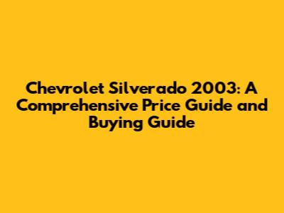Understanding the 2003 Silverado Price Range