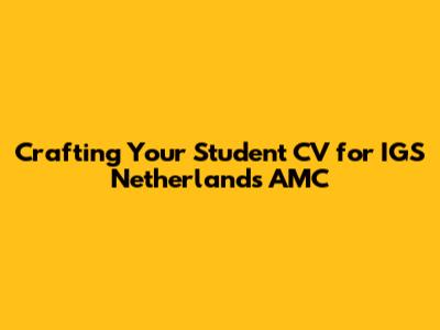 Crafting Your Student CV For IGS Netherlands AMC