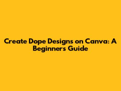 Create Dope Designs On Canva: A Beginner's Guide