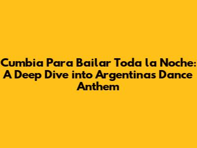 Cumbia Para Bailar Toda La Noche: Argentina's Dance Anthem