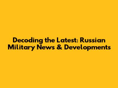 Decoding The Latest: Russian Military News & Developments