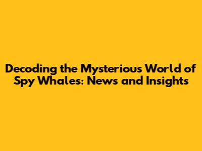 Decoding The Mysterious World Of Spy Whales: News And Insights