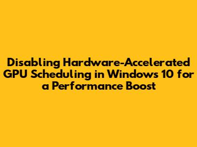 Disable GPU Scheduling Windows 10: Performance Boost