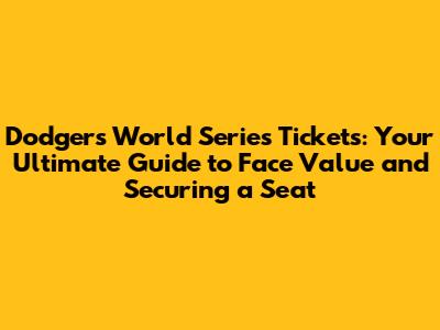 Dodgers World Series Tickets: Face Value & Buying Guide