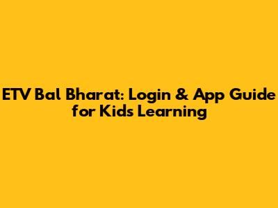 ETV Bal Bharat: Login & App Guide For Kids' Learning