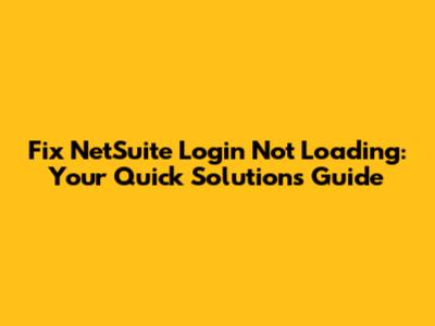 Fix NetSuite Login Not Loading: Your Quick Solutions Guide