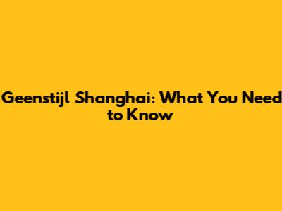 Geenstijl Shanghai: What You Need To Know
