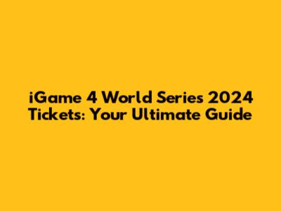 Get IGame 4 World Series 2024 Tickets: Buy Now!