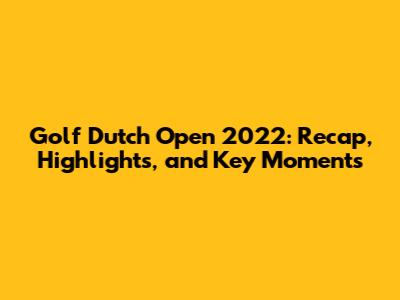 Golf Dutch Open 2022: Recap, Highlights, And Key Moments