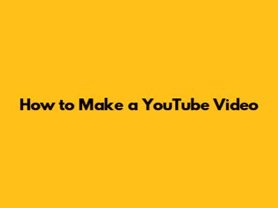 How To Make A YouTube Video