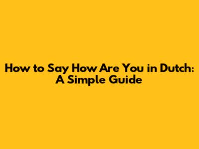 How To Say How Are You In Dutch: A Simple Guide