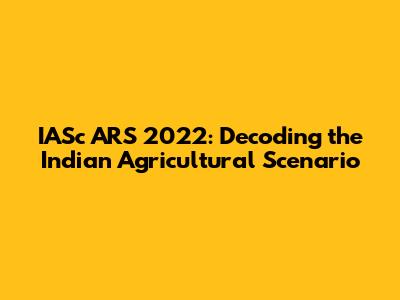 The Significance of IASc ARS 2022 in Indian Agriculture