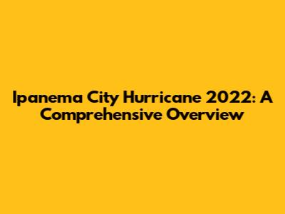 Hey everyone! Let's dive into the Ipanema City Hurricane of 2022, a significant event that left an indelible mark on the city. We're gonna break down everything from the initial impact to the ongoing recovery efforts. This isn't just about the news; it's about understanding the challenges faced by the people of Ipanema and the resilience they've shown. Buckle up, because we're about to explore the heart of this event, its consequences, and the community's fight to rebuild.