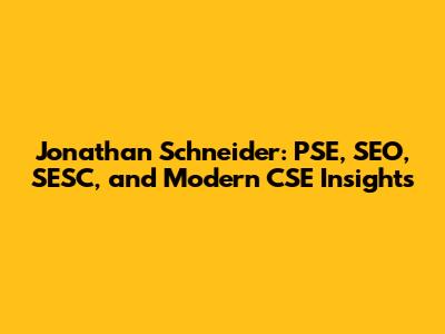 Jonathan Schneider: PSE, SEO, SESC, And Modern CSE Insights