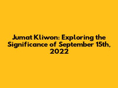 Hey guys! Let's dive into something pretty interesting: Jumat Kliwon on September 15th, 2022. For those of you who might not know, Jumat Kliwon is a special day in the Javanese calendar. It happens every 35 days and is a blend of the Islamic Friday (Jumat) and the Javanese market day, Kliwon. This combination brings with it a unique set of beliefs, traditions, and even a bit of mystique. So, what made September 15th, 2022, so special? Well, it was a Jumat Kliwon, which meant it carried the weight of this cultural and spiritual significance. The date itself, like any other day with this designation, became a focal point for various activities and beliefs within the Javanese community. The impact of Jumat Kliwon can be felt throughout the day and even during the days surrounding it. If we're being honest, it's pretty darn cool to explore the way people perceive time, days, and how it weaves into their beliefs.