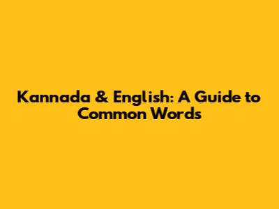 Kannada & English: A Guide To Common Words