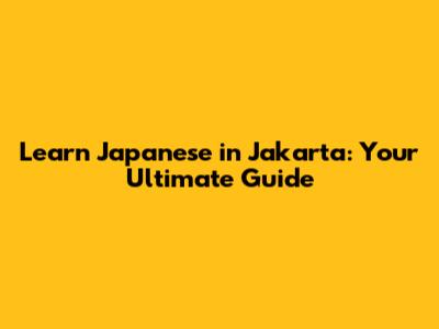 Learn Japanese In Jakarta: Your Ultimate Guide
