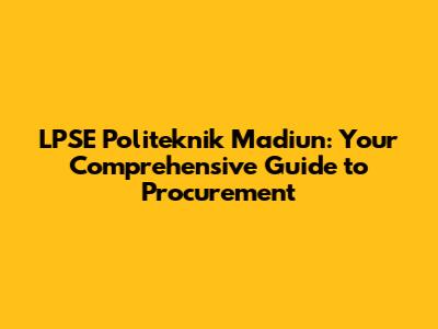 Hey there, future bidders and procurement enthusiasts! Ever wondered about navigating the LPSE Politeknik Madiun platform? Well, you've come to the right place! This guide is designed to be your one-stop resource, offering everything from understanding the basics to mastering the intricacies of procurement at Politeknik Madiun. We'll break down the jargon, simplify the processes, and equip you with the knowledge you need to succeed. So, grab a coffee, settle in, and let's dive into the world of electronic procurement at Politeknik Madiun!