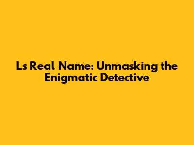 L's Real Name: Unmasking The Enigmatic Detective