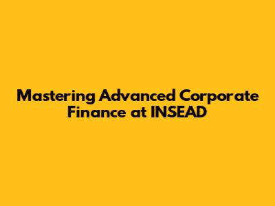 Mastering Advanced Corporate Finance At INSEAD