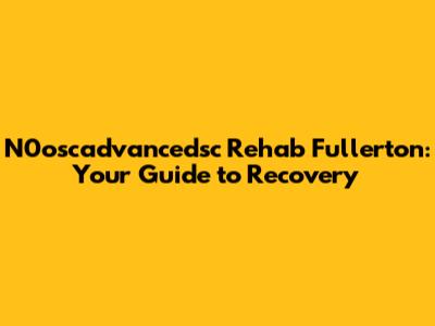 N0oscadvancedsc Rehab Fullerton: Your Guide To Recovery