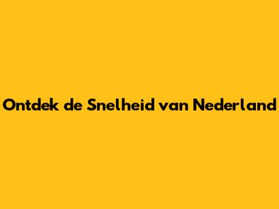 Ontdek De Snelheid Van Nederland