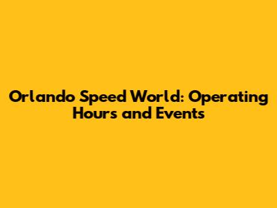 Orlando Speed World: Operating Hours And Events