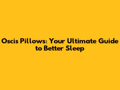 Oscis Pillows: Your Ultimate Guide To Better Sleep