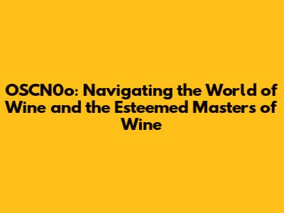 OSCN0o And The World Of Masters Of Wine