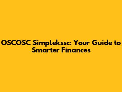 OSCOSC Simplekssc: Your Guide To Smarter Finances