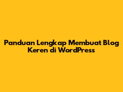 Panduan Lengkap Membuat Blog Keren Di WordPress