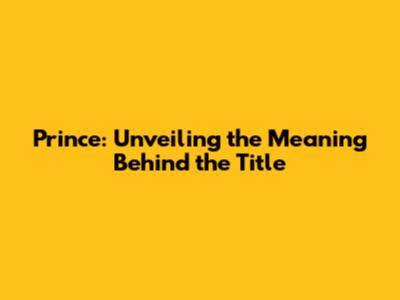 Prince: Unveiling The Meaning Behind The Title
