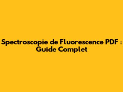 Spectroscopie De Fluorescence PDF : Guide Complet