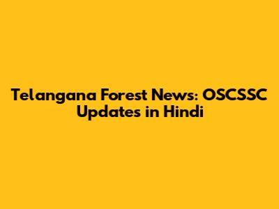 Telangana Forest Updates: News From OSCSSC In Hindi