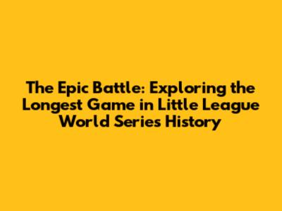 The Epic Battle: Exploring The Longest Game In Little League World Series History