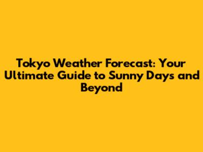 Tokyo Weather Forecast: Your Go-To Guide