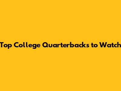 Top College Quarterbacks To Watch