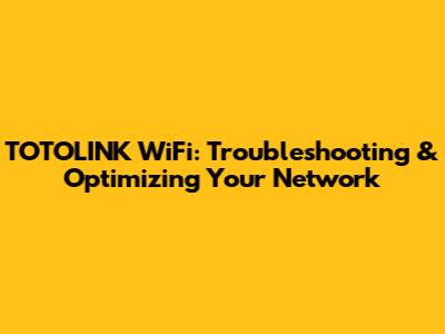 TOTOLINK WiFi: Troubleshooting & Optimizing Your Network