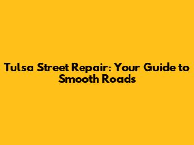 Tulsa Street Repair: Your Guide To Smooth Roads