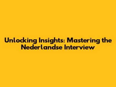 Unlocking Insights: Mastering The Nederlandse Interview