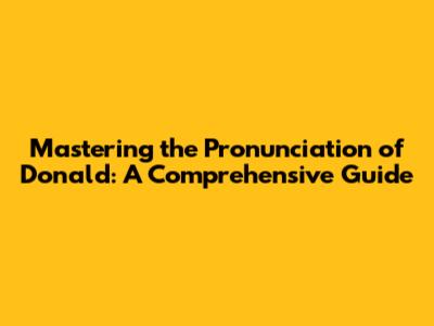 Unlocking The Secrets: How To Pronounce 'Donald' Perfectly