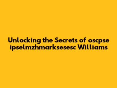 Unlocking The Secrets Of Oscpse Ipselmzhmarksesesc Williams