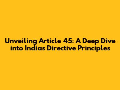 Unveiling Article 45: A Deep Dive Into India's Directive Principles