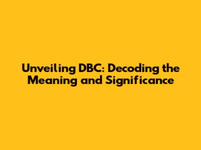 Unveiling DBC: Decoding The Meaning And Significance