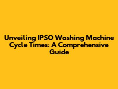 Unveiling IPSO Washing Machine Cycle Times: A Comprehensive Guide