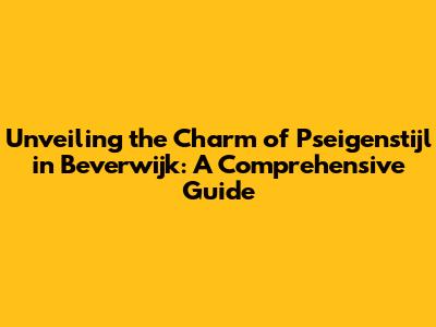 Hey everyone, are you ready to dive into something truly unique and captivating? Today, we're taking a deep dive into the enchanting world of Pseigenstijl in Beverwijk. This isn't just a location; it's an experience, a journey through architectural brilliance, and a testament to a specific design style. Get ready to explore the hidden gems, understand the historical significance, and discover why Beverwijk's Pseigenstijl is a must-see for anyone with a passion for architecture, history, or simply, beautiful places. So, buckle up, guys, because we're about to embark on an adventure! Let's get started on this exciting journey.